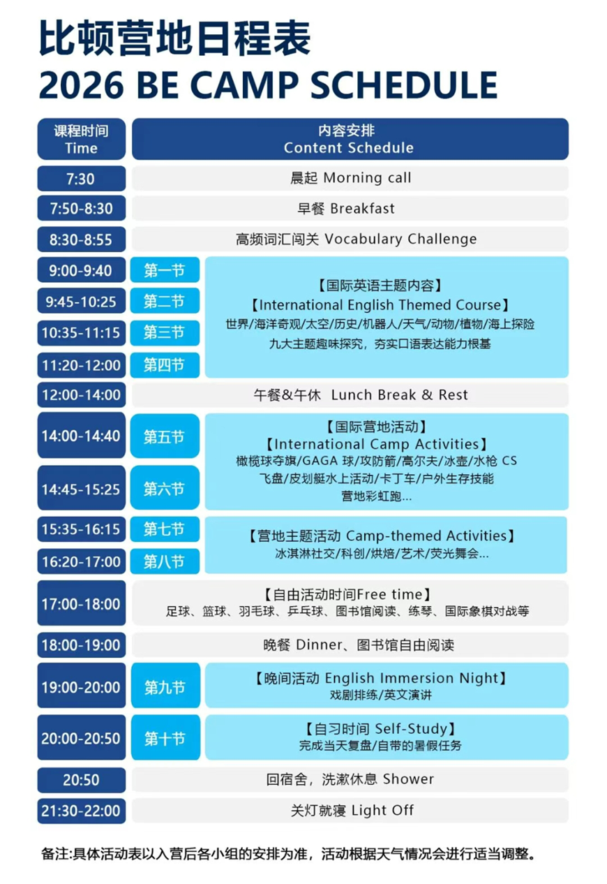 比顿2026暑假国内 | 国际交流营实景语言浸润,国际营地模式&美式营地活动,一体化全新升级!