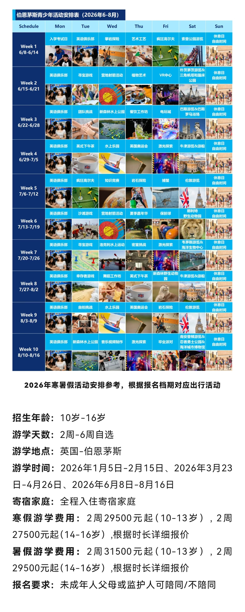 比顿2026英国游学 | 伯恩茅斯游学10岁以上青少年&亲子,成年人游学